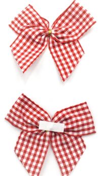 - 31175 - 15mm/25mm Hand tied Red gingham ribbon bow with adhesive pad on the back.